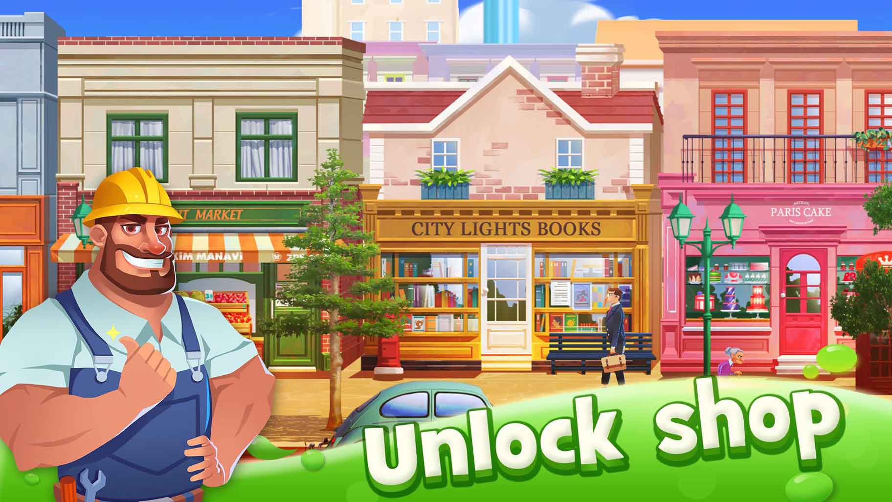 白手起家,创建商业帝国,成为世界上最强的商业大亨!体验三消游戏和闲置游戏的完美融合,谷歌首款!!!你可以在世界各地建造房屋、商铺、游乐园等等...甚至修建属于自己的银行、机场,赚取更多丰厚收益!完成三消关卡,拓展业务,赚取现金!雇佣超强经理,提高收益,获得更多的地产展现你的才华!