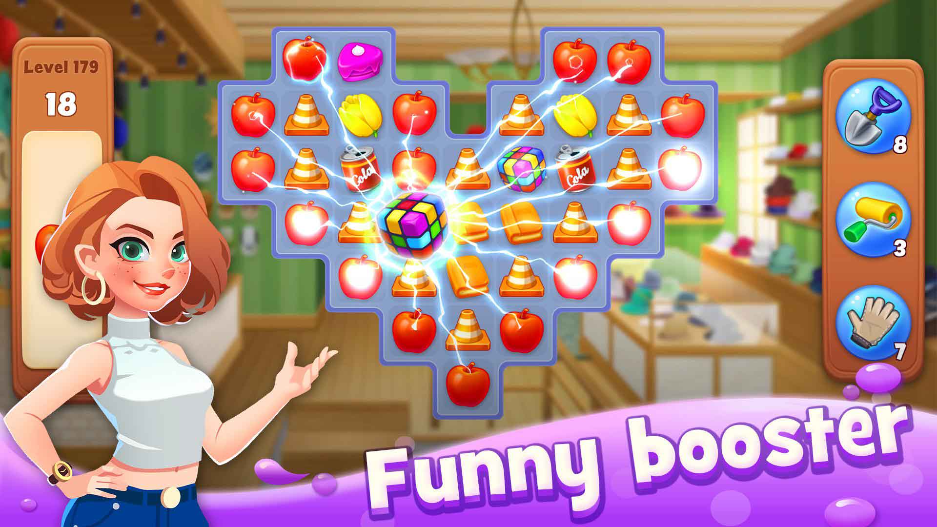 3、经典三消搭配创新玩法,全新消除乐趣等你体验《装修大亨》游戏2023最新版快来八门神器下载吧!