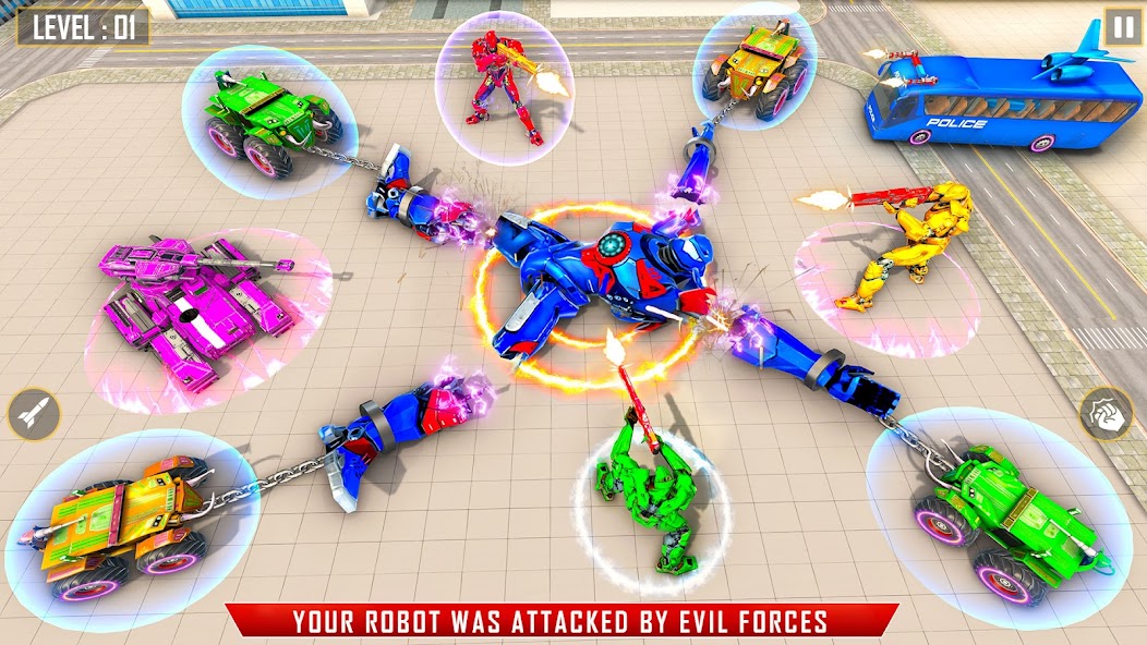 在这场飞行的警车机器人改造战斗中,欢迎机器人改造游戏和**机器人游戏的所有爱好者。是时候在巴士机器人游戏中通过机器人战争游戏获得更多乐趣了。成为此飞行巴士模拟器的专业**巴士驾驶员,在一个地方体验飞行机器人游戏和飞行**巴士游戏。您可能已经体验过飞行巴士机器人游戏的数量,可以在机器人格斗游戏中玩机器人射击游戏。但是,这种警车模拟器具有在警务机器人游戏中飞行的警车独特概念。在改造机器人游戏时,您可以在射击黑帮机器人时驾驶警车。如果您是玩警车驾驶游戏的专家,那么您可以轻松地在飞警游戏中处理机器人大战。准备好在**射击游戏中玩**机器人大战,就像公共汽车机器人大战的战士一样。