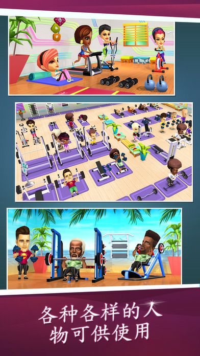 无需挥洒汗水,就能成为世界知名的健身企业家!欢迎来到这款令**罢不能的健身生活模拟游戏中,你会在自己的健身帝国里担任私人教练、经理和设计师。 从开设一个时尚健身房开始,通过培训常规客户和专业运动员扩展你的健身房,开放果汁吧、重新设计新的装饰并将你的健身房升级成你认为最“劲”的样子! 协助训练客户走上健康之路,让你沉浸在健身的世界中,你可能会成为业内下一个健身大亨。 《My Gym》的功能: 建立帝国 - 在这款有着完美身临其境的游戏体验和精美画面的游戏中,成为城里最有影响力的健身业者 - 提升等级以解锁新功能并升级你的健身房 - 通过数百个挑战,任务和成就的快乐经历 教练 - 解锁100个以上的练习 - 训练专业自行车手、网球运动员、武术家等 - 在体育经纪公司交易你最优秀的运动员,并为你的队伍找到最好的合同 设计 - 通过可定制的地板、壁纸、装饰等等,成为你的健身房的首席设计师 - 选择不同的健身器材 - 查看朋友的健身房以获得灵感 厨师 - 开设一家有机果汁吧,为前来健身的人们补充精力 - 制作美味健康的饮料,为口渴的客户服务 - 栽培并收获你最喜欢新鲜水果