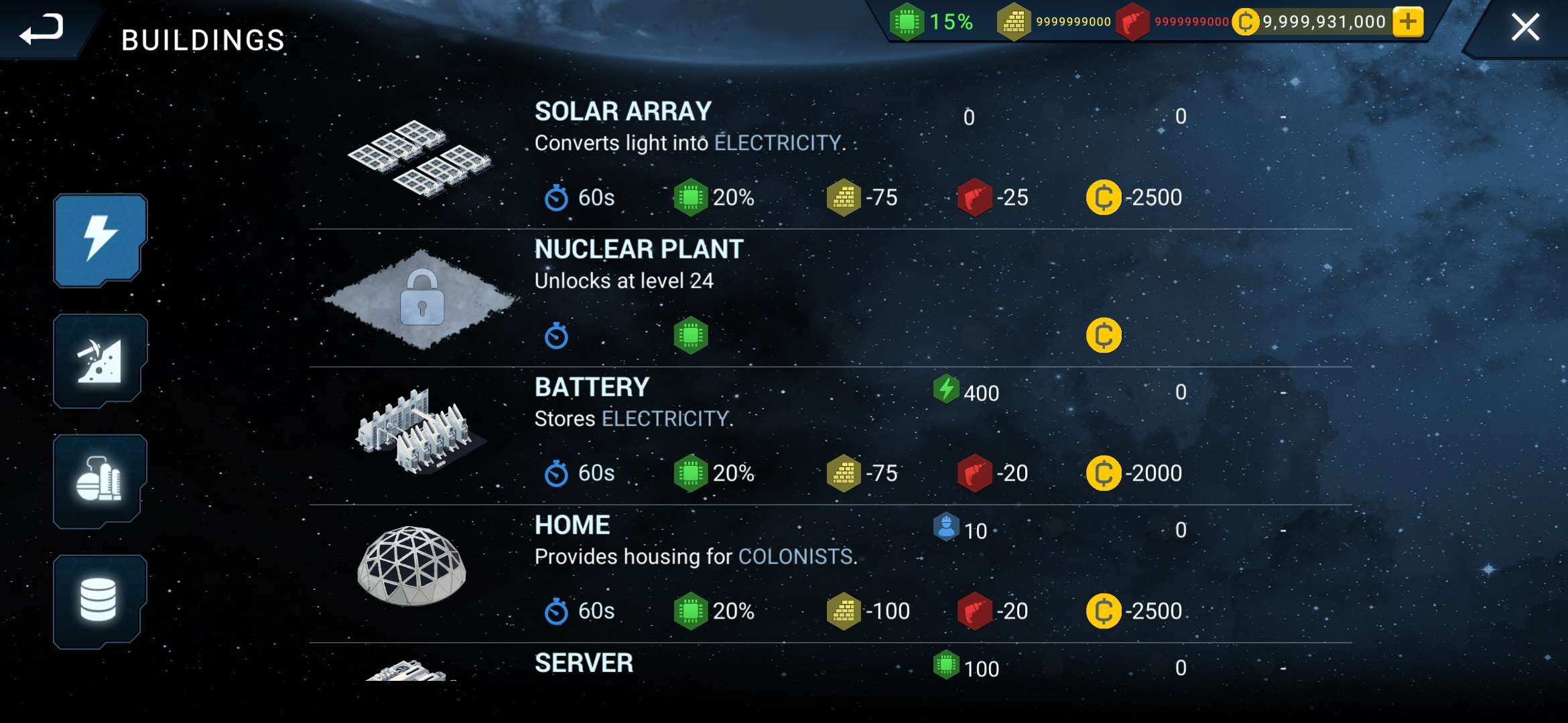 在资源有限的银河系中途,一家期待着一张薪水支票的大公司,生存和盈利取决于你。 拥有 30 多座建筑物可供您使用,您可以自行决定建立一个满足所有殖民者需求并确保他们安全和快乐的殖民地。 建造提取器、工厂、仓库等等! 为您的殖民者提供水、食物和氧气。 履行您的订单并扩大您的结算范围。 通过独特的模拟和实时策略组合创建您自己的太空殖民地。