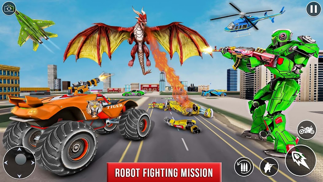 飞龙机器人游戏和怪兽卡车机器人游戏在这里为您献上礼物,以供喜欢玩汽车机器人变形游戏的用户使用。龙机器人汽车游戏是与怪物卡车赛车游戏最好的机器人游戏之一。在多机器人变形游戏2020中玩耍并享受变形机器人的乐趣。如果您想玩龙机器人游戏或怪物卡车赛车游戏,则必须在手机中安装此怪物汽车机器人游戏。具有多能力怪物卡车的汽车机器人变革战争是市场上的新事物,因为它融合了怪物卡车赛车游戏和飞龙机器人游戏的最佳功能。 龙机器人改造游戏具有最佳的怪物卡车驾驶控制和巨人的机器人射击能力。在2021年这款多级动力变形汽车游戏中,体验怪物机器人射击游戏和机器人变形游戏的最佳惊险游戏。在这款龙机器人游戏中,扮演具有终极超能力的飞龙机器人,并成为机甲机器人射击游戏和机器人的最佳战士。转变游戏2020。
