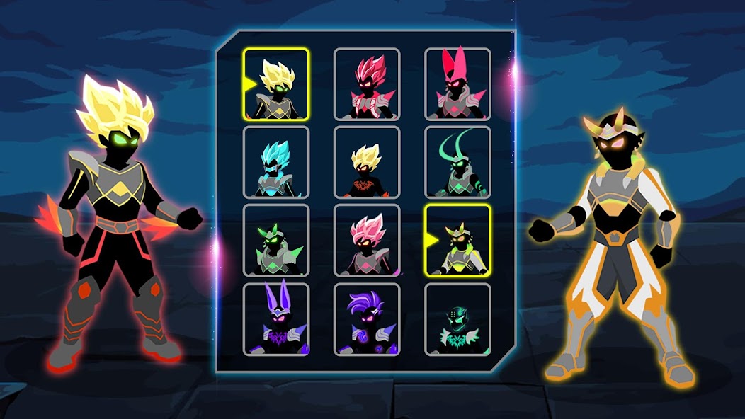 1、《火柴阴影 龙之战格斗游戏》游戏中,领着火柴人进行不同的任务,完成任务可以获得大量的奖励