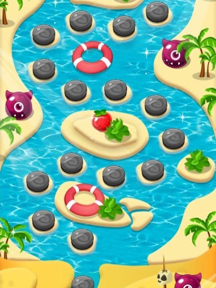 在相同颜色的水果上滑动即可破坏它们。在每个级别上执行任务。 最初,您有5条生活。如果您没有通过某个级别并返回主菜单,则将失去一命。如果您无法完成关卡,则可以再获得5个动作,然后尝试再次玩关卡。还有一个有时间限制的游戏模式。 对于每个完成的级别,您都可以赚取积分和奖金。游戏中有6种关卡目标,100个关卡和排行榜。如果您用尽了所有生命,只需在游戏中保持开启状态7分钟即可获得新生命。您可以在左上方的计时器上看到剩余时间。