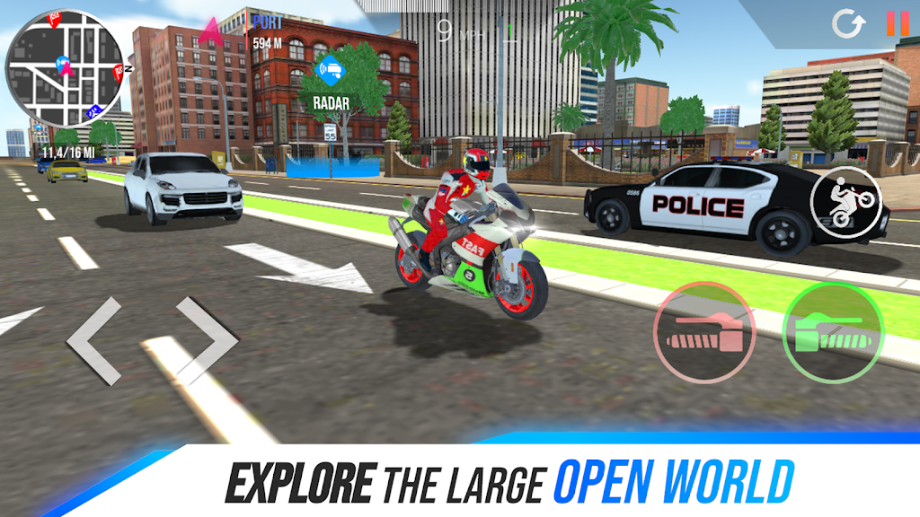 在免费模式下探索地图的每个角落。不要错过城市,乡村道路,桥梁,公园等。 获得许可证,以克服驾驶scholl的所有测试。 超越自己,在时间试验中获得金牌。 解锁并享受改进的摩托车,将您的驾驶带到另一个层次。 那么......你准备参加比赛吗?