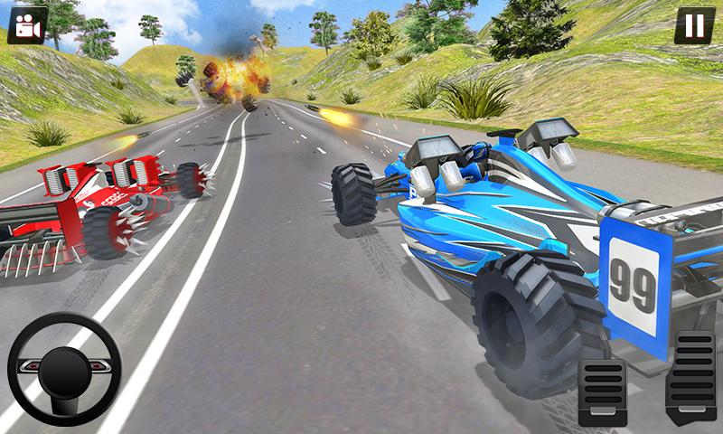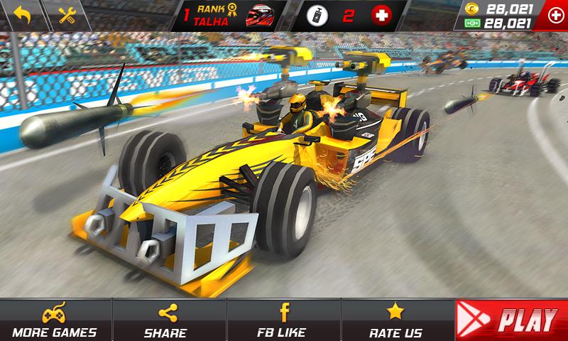 您准备好玩在线公式赛车游戏了吗?如果是,那么欢迎来到新的方程式赛车射击游戏,在这里您可以与朋友或随机的离线竞速对手竞赛和射击。收紧安全带,按一下操纵杆,控制转向,并在越野赛道上以超高速驾驶新跑车。在最好的汽车交通射击游戏之一中享受死亡赛车的汽车战。