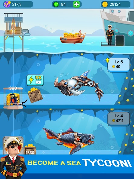 Sea Jurassic Tycoon 是一款闲置的大亨模拟器游戏,用于发现侏罗纪海洋怪物物种。 你可以让你的宠物水下海怪工作,收集金币并建立你的海洋怪物物种的虚拟世界。收集不同的物种,让它们变大变强去战斗。 开采水下黄金,赚钱并建立帝国,成为最富有的资本主义亿万富翁。 特征: - 令人兴奋的海怪在每个区域解锁,每天都有更多物种出现 - 与您的宠物海怪互动,让它们工作或升级以训练它们自动工作 - 在不同的恐龙世界战斗 - 空闲战斗游戏