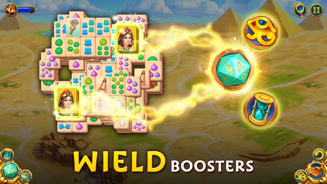 在乐趣无穷的连连看解谜游戏《Pyramid of Mahjong》里穿越时空回到古代!尼罗河三角洲有个聚居地需要您的帮助来恢复埃及帝国时代的荣光。快来挑战数千道麻将牌配对关卡,结识魅力不凡的角色,置身悬念丛生的情节,在畅玩连连看游戏的同时把这个曾经美丽如画却惨遭毁坏的地方重建成新王朝的掌上明珠吧!
