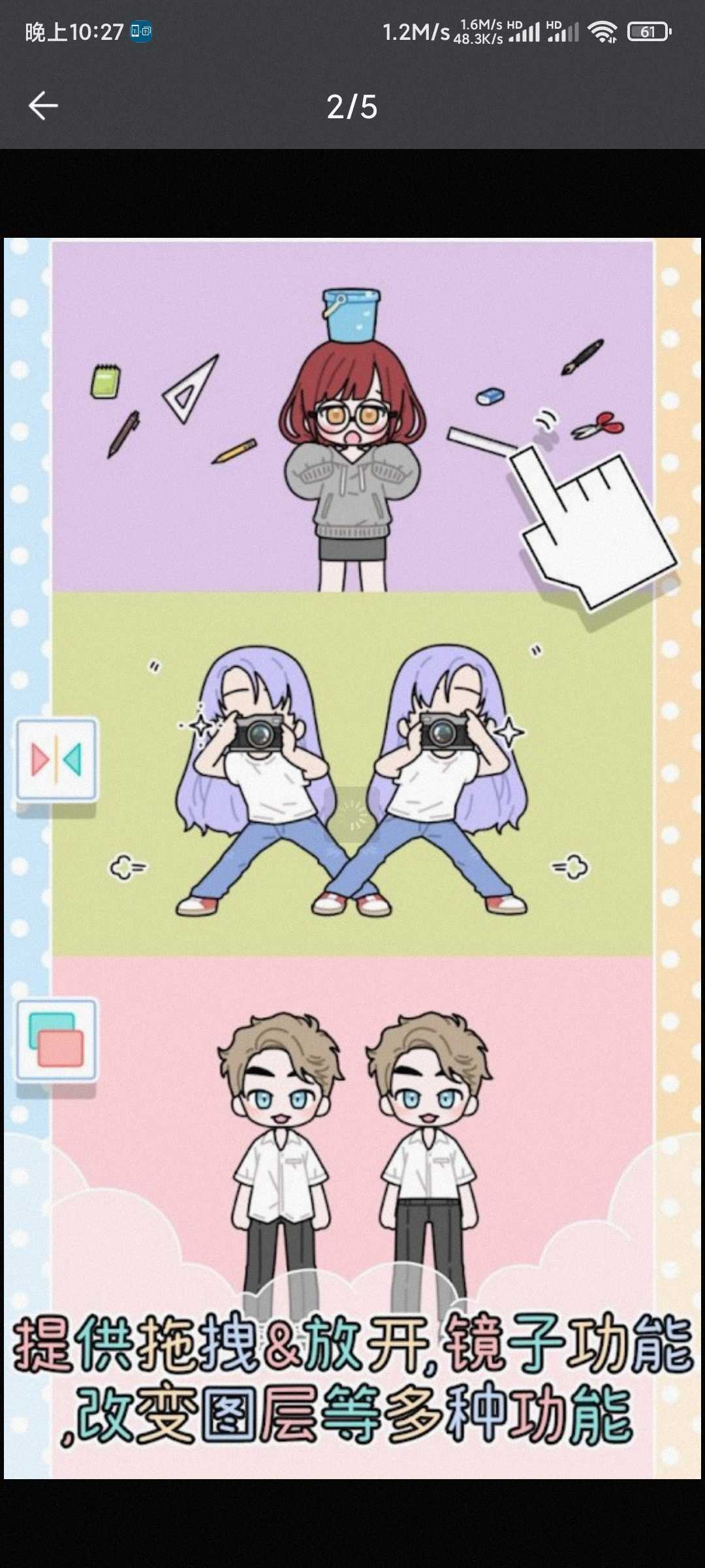 1. 缤纷好友是可以与缤纷色彩可爱好友一起装扮时装以及背景的疗愈游戏。 2. 可进行装扮套装以及装扮好友两种游戏。已保存的套装可以在装扮好友时使用。 3. 提供拖拽&放开、镜子&图层功能,以及好看的动画等多种功能。 4. 使用多种服饰道具、帅气效果、对话框、文字等来撰写属于自己的故事吧! 5. 将打扮美美的时装与背景分享给好友吧! ※ 本游戏的数据保存在设备中,设备中删除游戏时数据将自动被删除。 ※ 商城购买道具将被储存在服务器中,重新安装游戏时可进行复原。 ※ 无法安装或支付后道具未出现时,请按照下列顺序进行操作。 1) 设备设置 → 软件 → 谷歌商店 → 保存空间 → 删除数据级缓存 2) 仍然出现问题时请删除游戏后 1) 重新执行项目进行安装。 收起