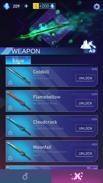 2021年所有类型音乐游戏中与众不同的EDM游戏。让我们在音乐忍者中进行华丽的音乐冒险,在那里您将自己变成如此帅气的忍者英雄,完成这一具有挑战性的旅程! 忍者武器 + 热辣 EDM + 破折号 + 震撼场景 = 超酷!!! 忍者音乐冒险: 作为忍者,你必须勇往直前,永不违背诺言。 这次你的任务是与音乐世界的节拍作斗争。不要再等了,现在拿起你的武器,向前冲刺!穿梭于剑影之中!