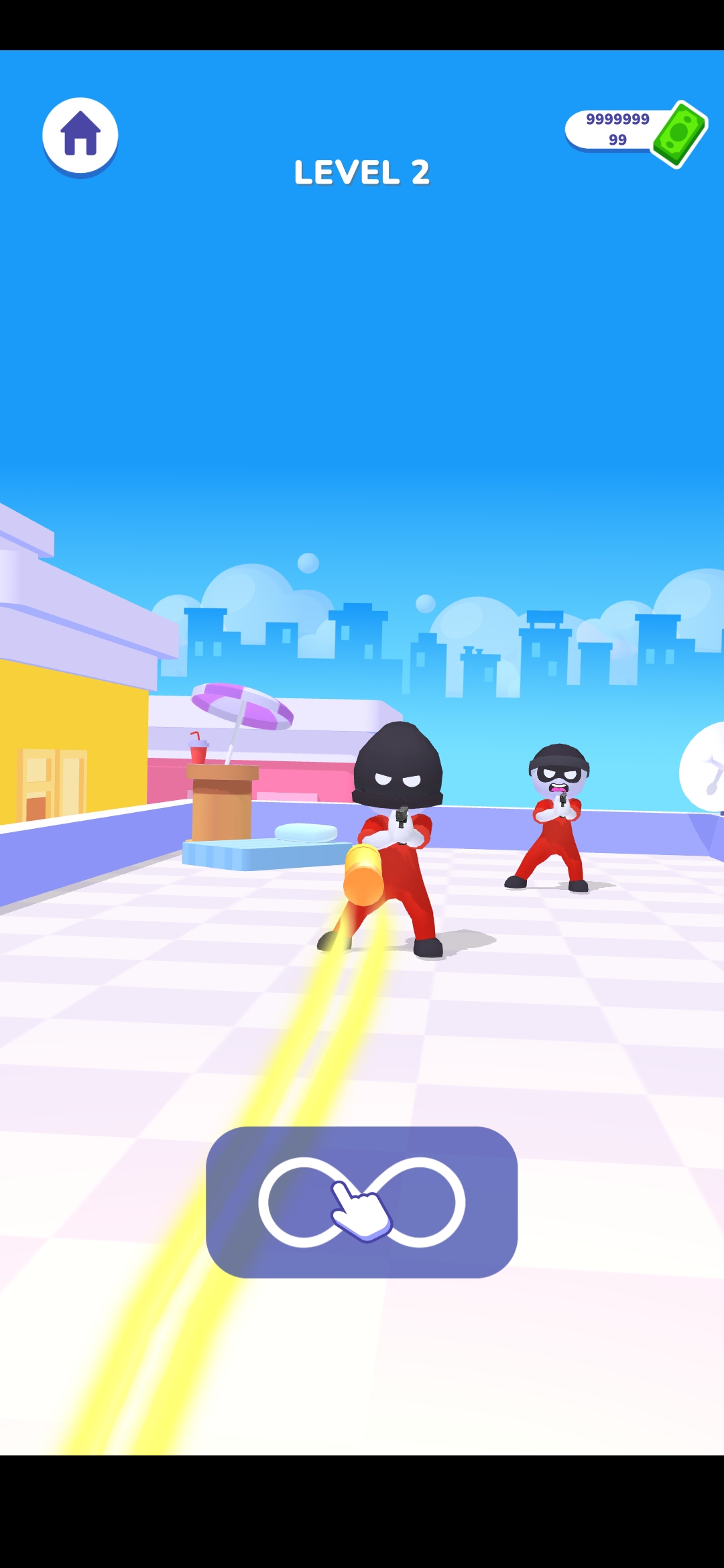 你是英雄,你应该拯救落入强盗手中的受害者。 在英雄线中,您可以根据自己的轨迹绘制路径,但主要目标是击中所有强盗。
