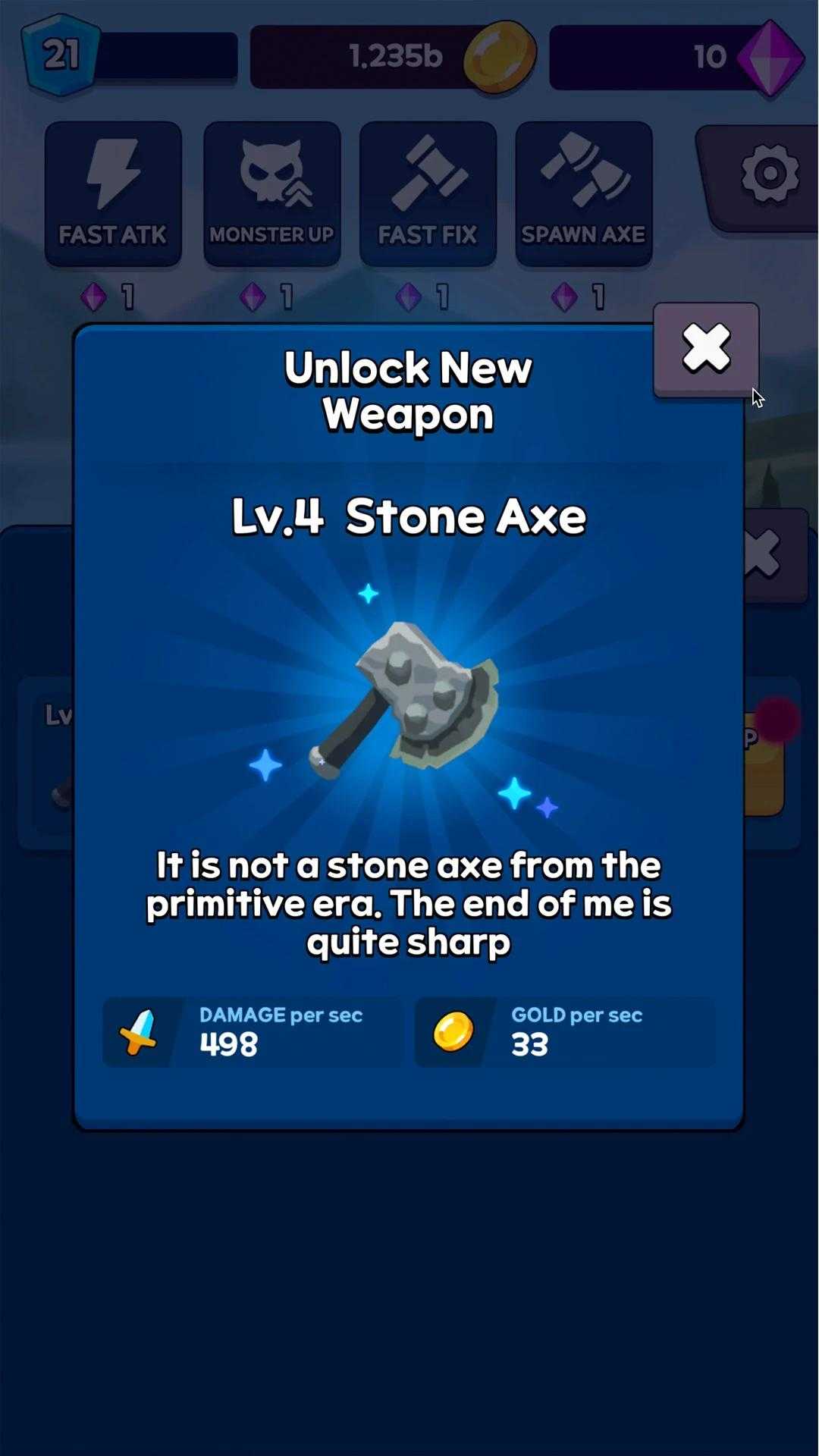 1、《终极斧头点击器》游戏中,丰厚的奖励,超多的卡关等你来挑战。