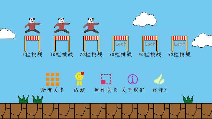你是一个熊猫人,需要跨过很多栏杆去获得奖牌,不过要小心,每个栏杆前面都会有不同的套路等着你。从简单到困难,有多个挑战等着你,每次挑战出现的套路可是随机的,考研你的时候到了,你能hold的住吗?