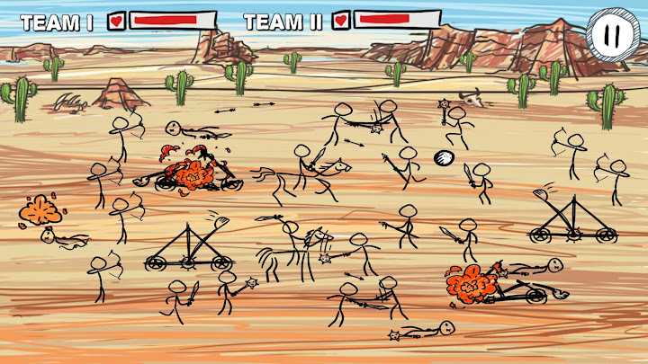 在这个游戏中你扮演的小手绘制的小男人。创建一个庞大的军队,并试图反抗的敌人!这是一个大的战斗! 开始时你有一定的点数的游戏。他们可以在部队购买新战士。战士他们的攻击,攻击力,生命值的技术不同。赢得战争来获得新的点,提高你的火柴人的军队。 为了获得成功,你需要正确地放置在战机上图!火柴士兵会均匀地或在不同的方向上运行 - 这取决于你。你在这里的指挥官。 选择不同的战场,现在开始战斗模拟!