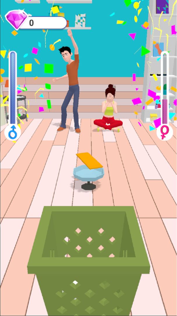 【情侣投壶】是一款具有魔性的单机小游戏,虽然操作简单,但是也要注意选择是否要投进纸篓的策略哦。不然的话,可能就有许多家务活等你去做,或者烂水果等你去收拾,当然,也可以和女朋友一起玩,但是拒绝坑女朋友!哼哼……