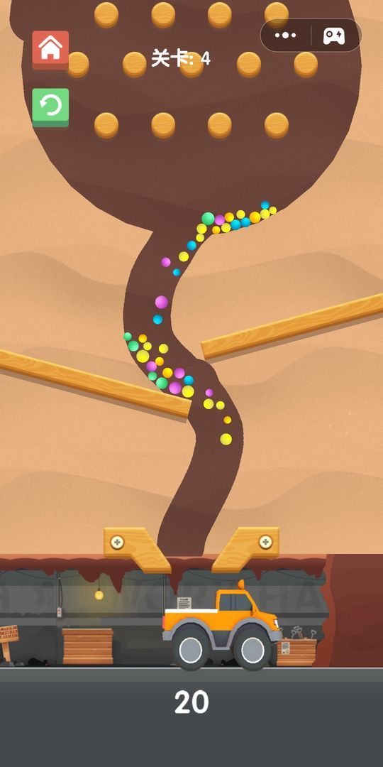 成功收集到指定数量的球球到达下方的小汽车,即可成功闯关啦!!!