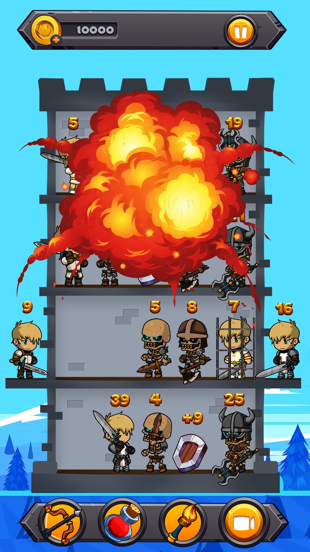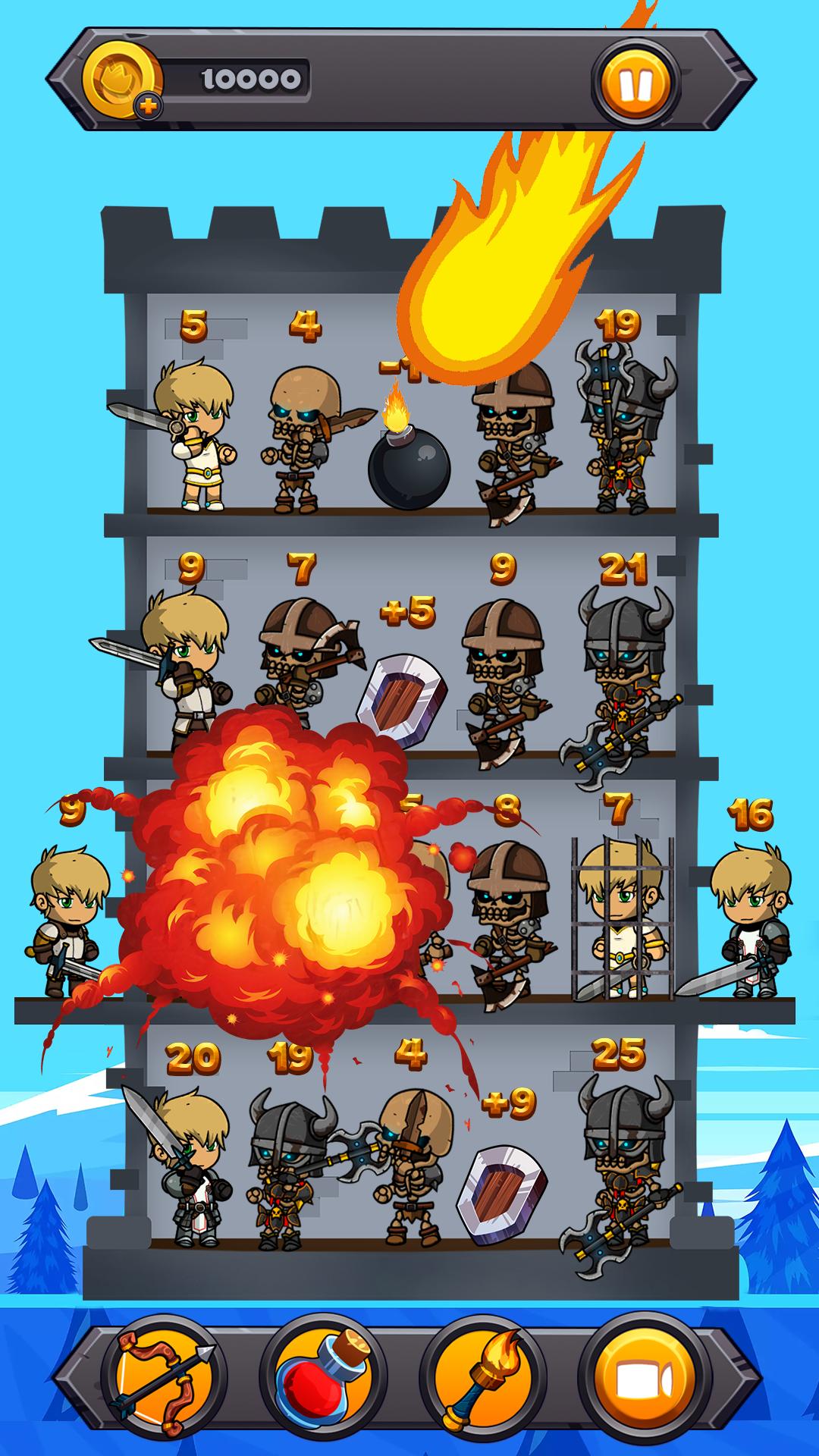怎么玩: 1.计算敌人的数量。 2.合并你的士兵数量,带领你的强大队伍走向胜利! 3.解决塔中的数字难题! 4. 将你的战士放到塔的右层! 5.保护你的士兵数量,因为每一座塔都可能对你的逻辑和数学技能构成挑战! 6. 使用特殊助推器,帮助您赢得这场大脑挑战! 7. 跟随故事,为你的英雄找到强大的物品!让你的英雄成为这些土地的新传奇!助推器 游戏中有 3 个助推器: - 提示。使用提示显示塔的下一层进行攻击! - 返回。使用 Return 取消您的最后一个操作! - 治疗药水。恢复士兵人数或获得增援!如果水平真的