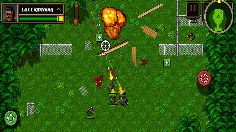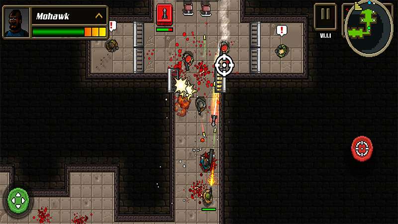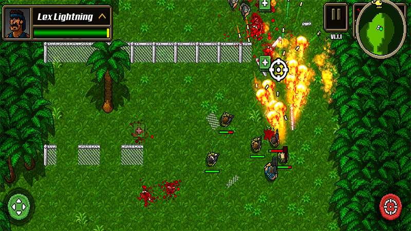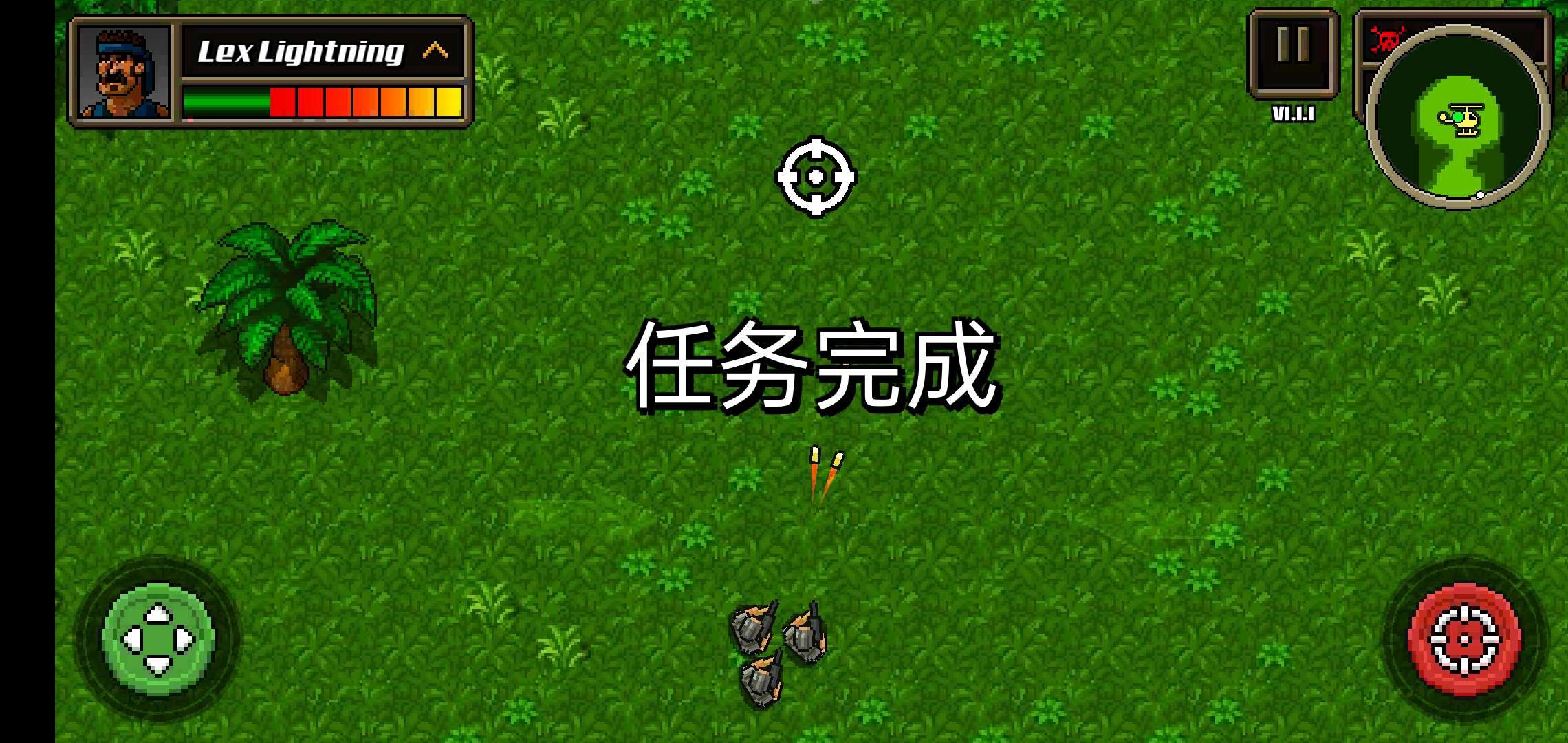 游戏采用双摇杆玩法,左边操纵人物行动,右边射击瞄准。