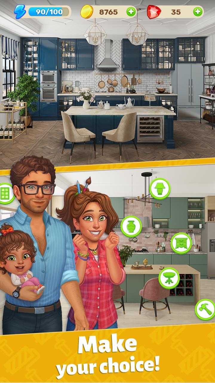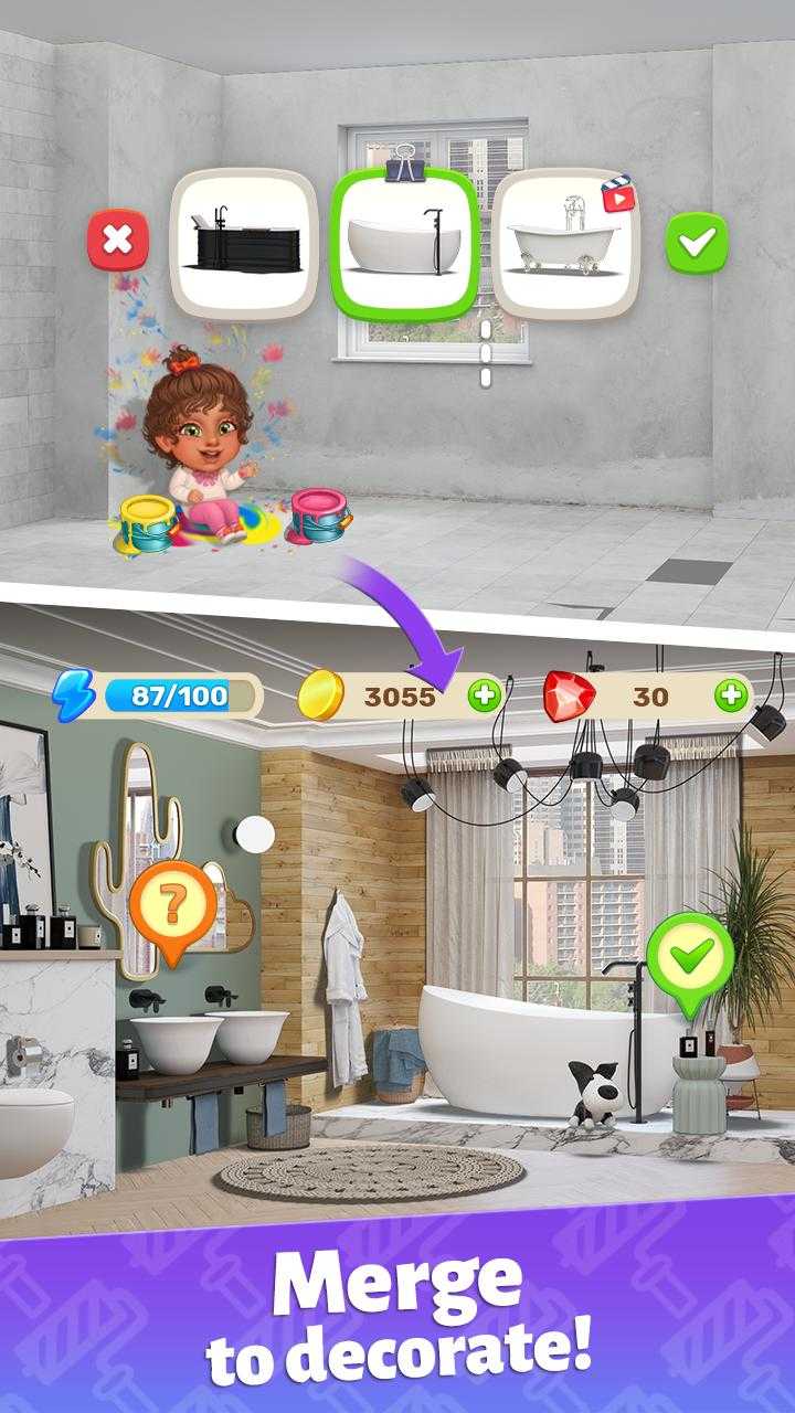 合并和匹配家里的家具! 以您的风格设计公寓! 关注家庭爱情故事! 在设计游戏 Merge Design Makeover 中让您的梦想成真! 合并各种工具进行翻新以帮助角色。帮助小露西设计她可爱的儿童房。匹配不同的工具来创造漂亮的家具。 修理、定制并使您的风格像真正的室内设计师一样!不要忘记可以帮助露西拥有一个完整家庭的爱情故事!