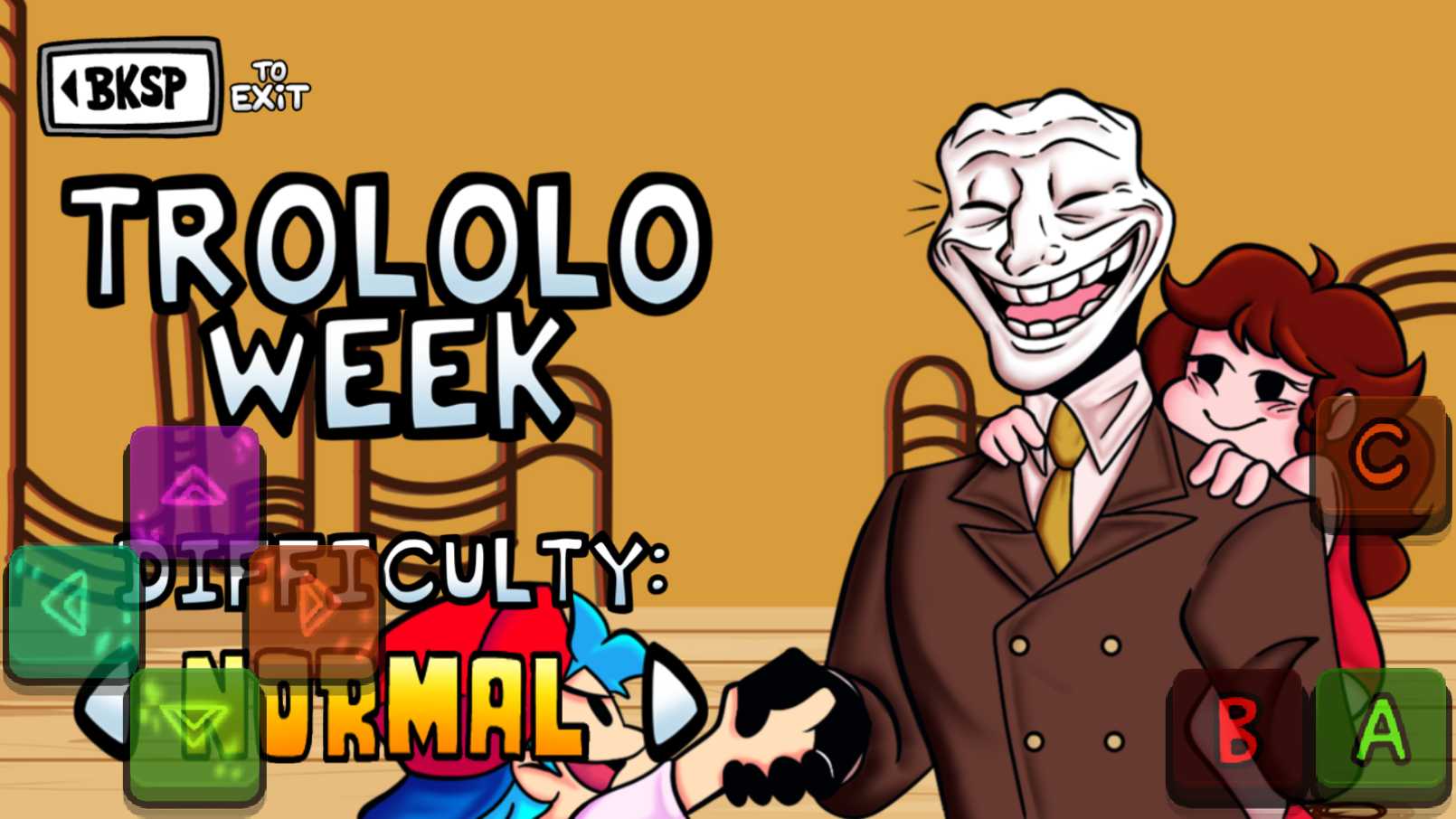 黑色星期五之夜trololo模组2.0是一款趣味十足的音乐闯关游戏,游戏中加入了mr trololo这一个特殊的角色,通过对战让你更好的体验故事,每一个过程都会给你全新的体验。随着全新的内容加入,游戏的难度也进一步提升了,非常考验玩家的手速。