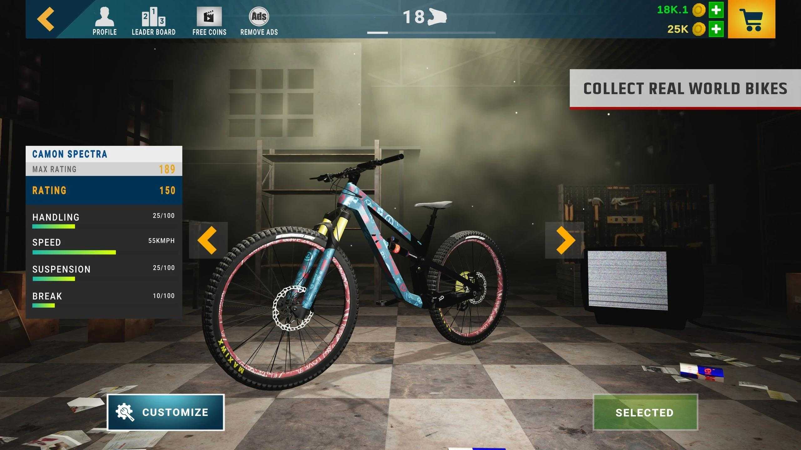 下坡山地自行车游戏特色: