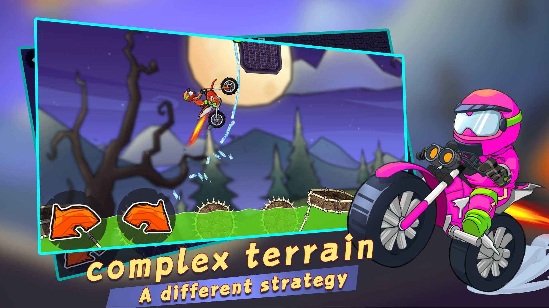 新关卡等你挑战!一款非常有趣的摩托车驾驶游戏。游戏中,玩家需要操控摩托车,挑战不同赛道上的障碍物,每一次挑战障碍物都是一次突破,没有一点驾驶技术是非常困难的哟! 特征: 1、汽车必须保持良好的平衡,不要让汽车翻倒,否则会直接爆炸。 2、不要特别注意机制,一路按加速键,保持小车平衡最重要。 3.为了完成3星级别,您必须在短时间内通过该级别。中途死亡一次后,时间不会重置而是继续计算,所以如果你想在中途完成3星等级,你不能死。 (它在你开始后开始。) 4、在空中时没有太多不必要的操作,唯一要注意的就是车子是否翻车,如果车子在空中倒挂,一定要及时调整平衡才会翻车。 5、多样的陷阱挑战,意想不到的登陆瞬间; 6.跨越不可能的障碍,展现壮丽的空中姿态!