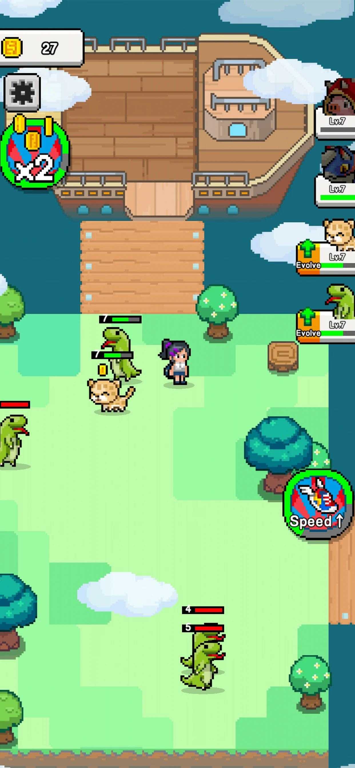 有一天,你乘飞机来到了一个神秘的荒地,在那里你遇到了……十几个怪物?! 作为初级训练师,捕捉怪物作为你的宠物,训练它们为你而战! 尽可能多地击败怪物并获得奖励。 花费金币穿越不同的土地,乘坐飞艇穿越不同的岛屿! 收集各种小宠物,解锁更多风景!