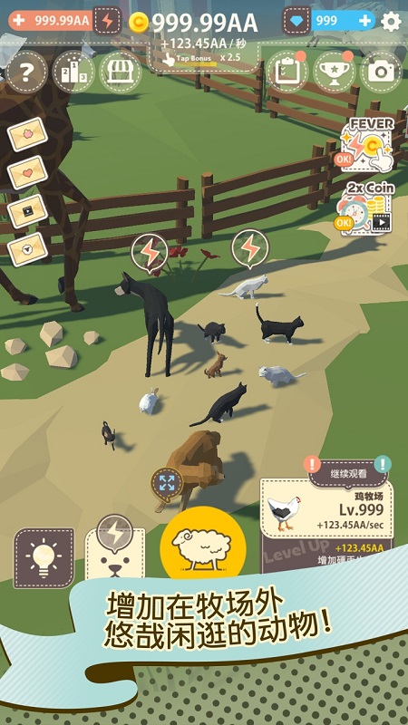 而且只要开拓容纳新动物的牧场,就能够自动收集硬币!