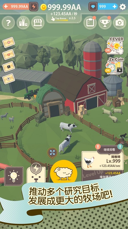 增加羊只赚取硬币,还可以增加牧场自动收集硬币!