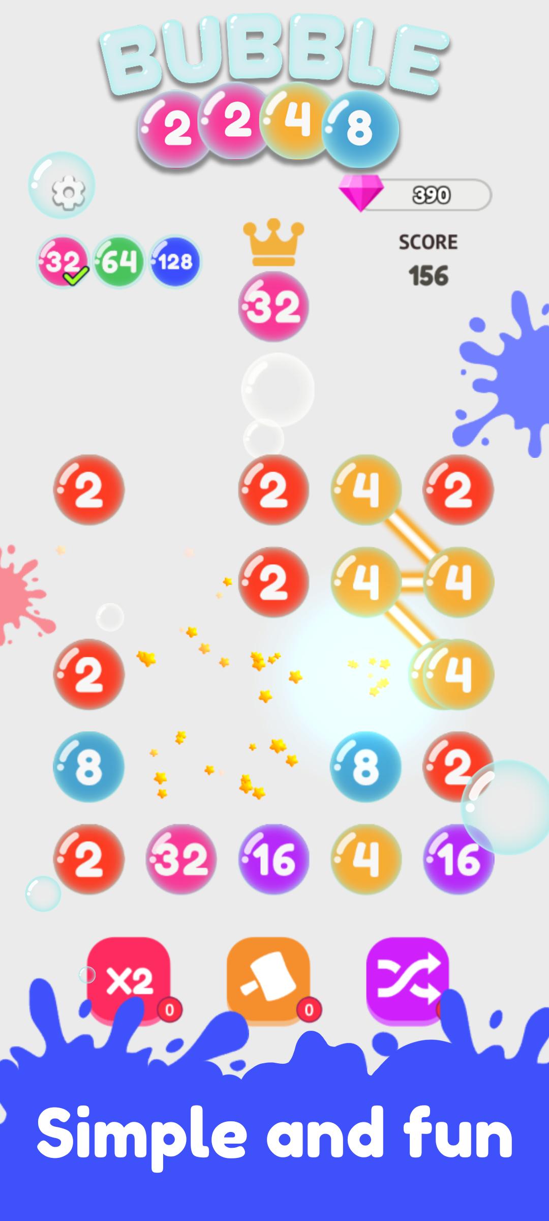 欢迎来到泡泡世界! 连接相同编号的泡泡,相同颜色的泡泡会增加2倍,获得更高等级的泡泡。 连接尽可能多的数字以获得更高的分数。 让我们开始玩吧!