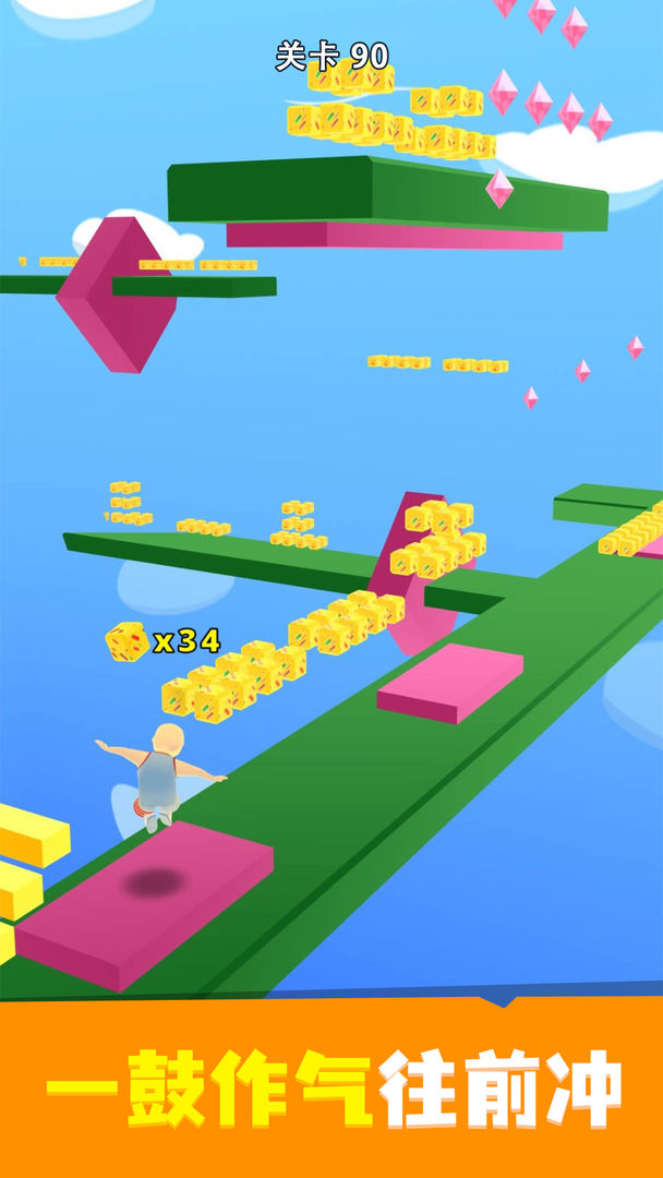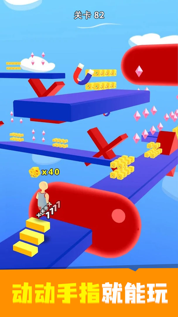 当您到达终点线时,尝试尽可能跳到最高的**,钻石的数量将乘以相应的楼梯数量。