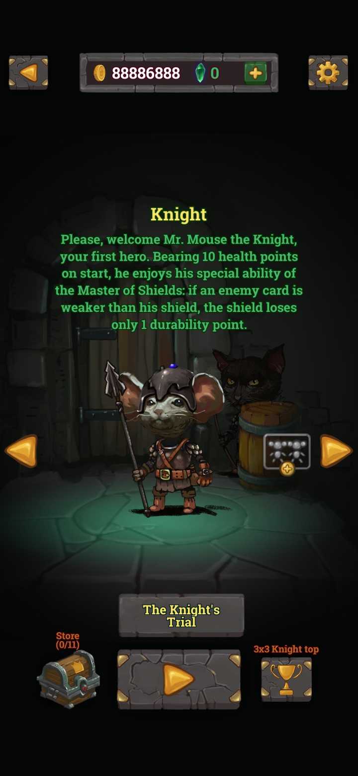 一种包含魔法和简单规则的纸牌游戏。你将得到一组代表你的勇敢英雄的卡片,你可以向左或向右、向上或向下移动一步。英雄需要穿过地下城,打开箱子,喝长生不老药,收集硬币,投掷火球,避开陷阱,打败boss。进入多个排行榜! 这款游戏提供了带有roguelike元素的简单的基本机制,但要想精通这款游戏却并非易事。 你有11个不同策略的英雄,以达到尽可能多的战利品。他们是骑士、法师、圣骑士、盗贼、破坏者、黑暗德鲁伊、兰斯洛特爵士、狂战士、刺客、瘟疫医生和弓箭手。 打败一个boss,增加游戏难度并升级英雄。获得一个箱子作为奖励。小心:在有用的卡片中,你可能会遇到危险的卡片,比如毒药。 这款游戏肯定会给你一些美好的时光,或者几个小时,因为据说它会让人上瘾。