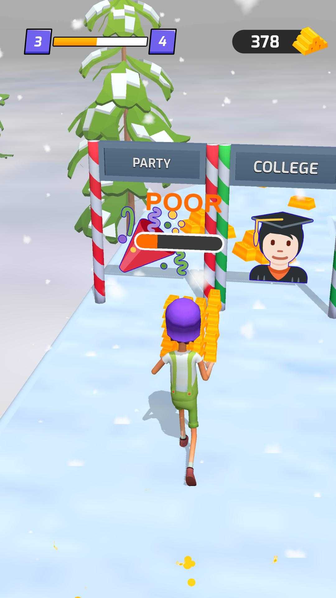 Money Running Race 3D 游戏是一款实现目标的游戏。你怎么看待黄金主题的游戏? Money Run 3D 的灵感来自现实世界的金钱和黄金收藏。这款免费游戏中的路径模拟了百万富翁或亿万富翁的成功之路。这款游戏绝对是您不容错过的 2022 年最佳跑金竞速 3D 游戏之一。 从一个没有丰富背景但背景很差的无家可归的人开始。您的任务是通过出售黄金、学习和工作致富来赚取现金。注意远离并克服障碍,例如聚会、游戏甚至女孩。这些东西会让你破产。省钱! 事实上,你不能立即从穷人变成富人。在成为亿万富翁之前,您将成为无家可归者、劳动力、银行家和商人。您的服装也将根据您的赚钱水平而变化。货币化和储蓄能力将决定您的房屋和资产。成为百万富翁还意味着您将成为真正的装扮女王或国王,并拥有梦想的生活。收集金币,坐豪车和闺蜜买漂亮房子