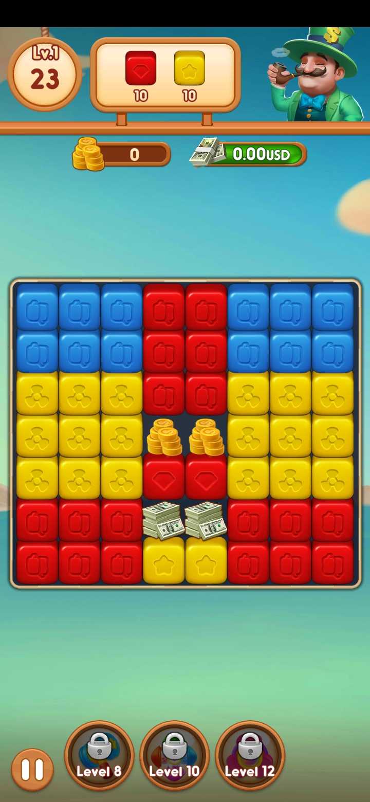 通过完成不同的任务来解锁一个最终的水平,现金男爆炸是很容易开始,具有挑战性的谜题游戏。 如果你曾经玩过其他的连线消除游戏,你就会知道这款游戏有多么不同。精致的图形设计和3D模型,实用的任务,独特的游戏体验与独特的音效和视觉效果。 点击两个相同颜色的立方体或工具,会给你带来兴奋和愉悦的感觉。内置游戏纺车,你将有机会赢得额外的商品和工具。 收集更多工具以更轻松地完成任务并解锁更多关卡。任何玩家都可以通过进入最后的关卡而获得乐趣。