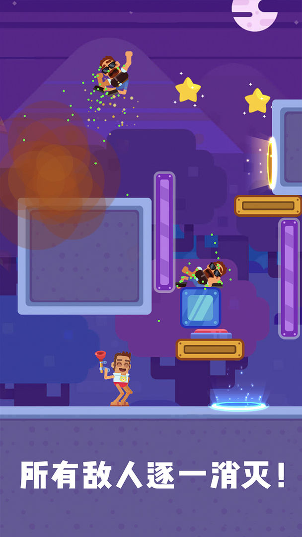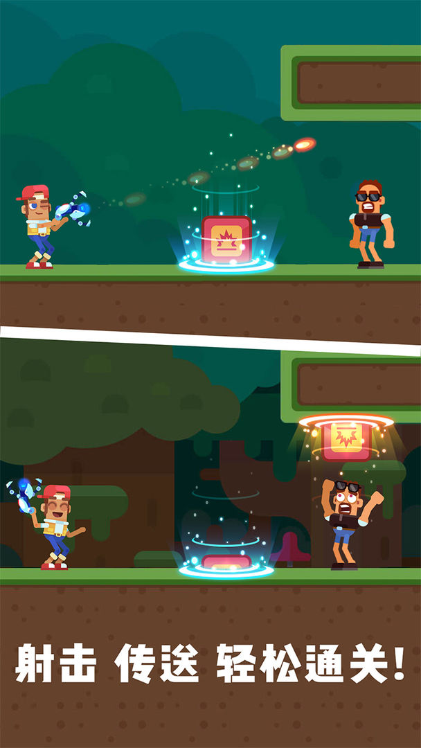面对游戏中被各种地形、道具阻隔的敌人,利用传送枪创建传送门,将击败敌人的制胜道具传送到敌人身边,击败所有敌人,成为让一切尽在掌握之中的高手!