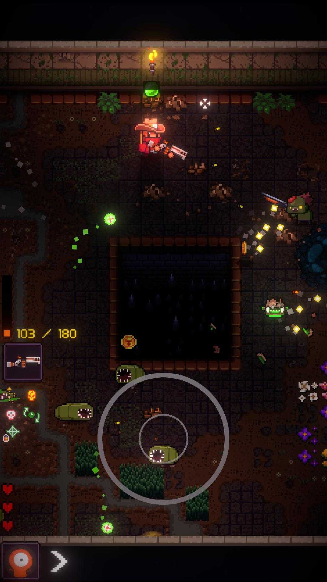 1、《地牢VS枪手》游戏中,地下的世界充满了无限的生机,你要接受不同的挑战方式