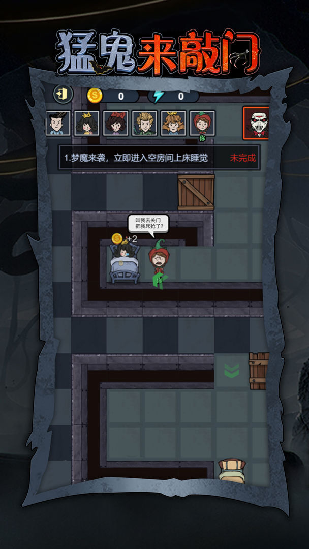 《猛鬼来敲门》是一款融合塔防策略和密室冒险玩法的游戏。前期玩家需要**发育,通过入睡来发财产出升级装备道具。在与猛鬼周旋中不断丰富房间装置,对抗强攻,顺利存活才能闯关成功。