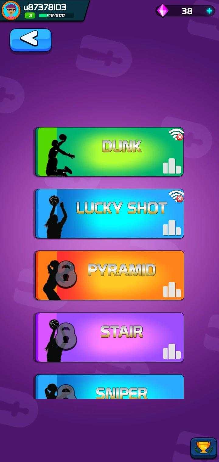 4、每层都会随机获得技能,合理搭配技能,会让挑战更加轻松爽快。《篮球投篮和扣篮》游戏2023最新版快来八门神器下载吧!