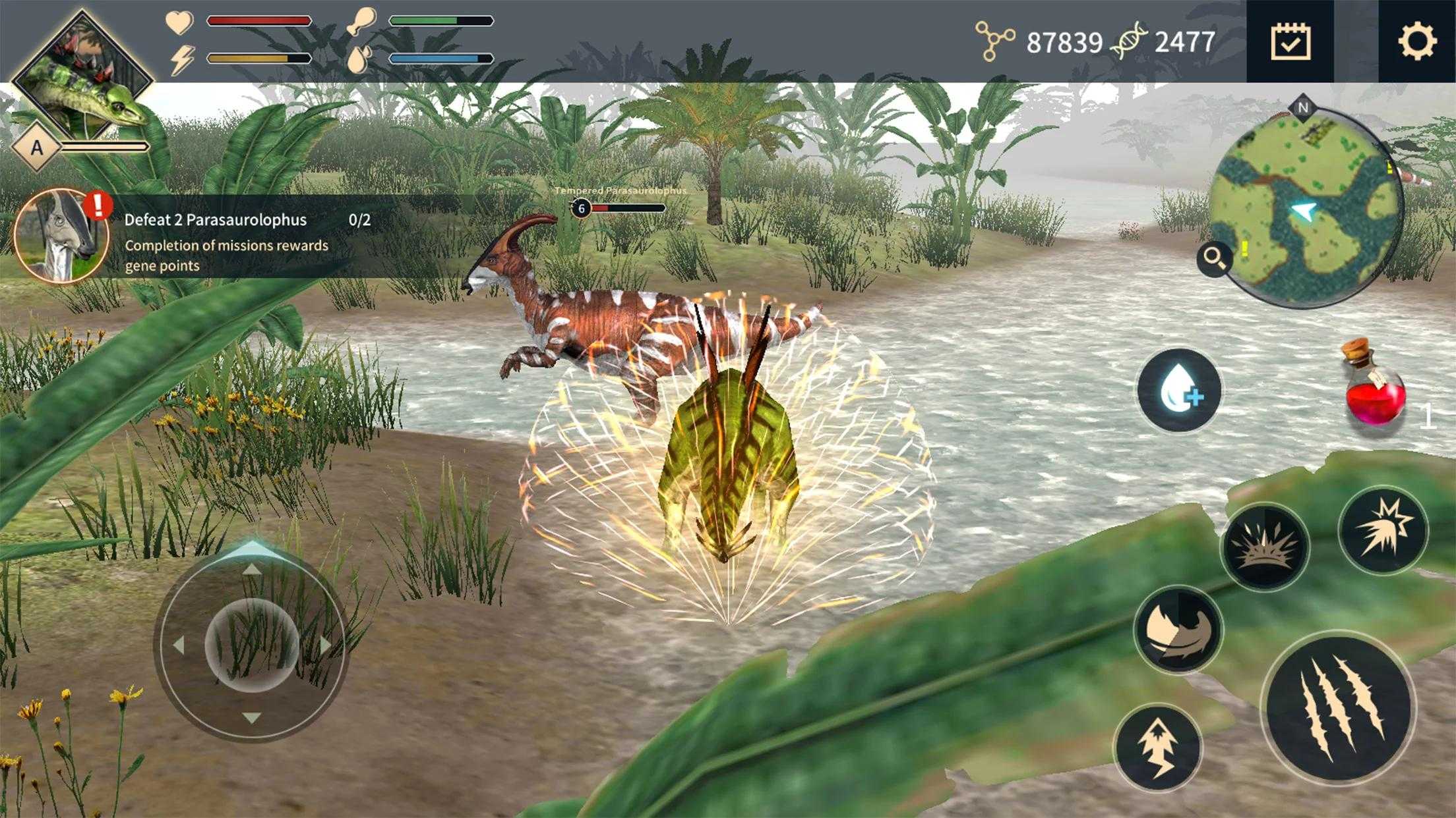 Dino Sandbox 是一款恐龙战斗模拟游戏,现在让我们通过简单的控制在这场大逃杀游戏中移动你的恐龙与其他恐龙作战! 想象自己是一只出生在侏罗纪公园这样的世界的恐龙。为了生存,你需要不断进化和提升属性,比如攻击和防御。所以你需要通过完成任务来获得更多的“基因点”。只有这样,你才能确保在面对比你更强大的恐龙时,你有足够的能力击败对手。