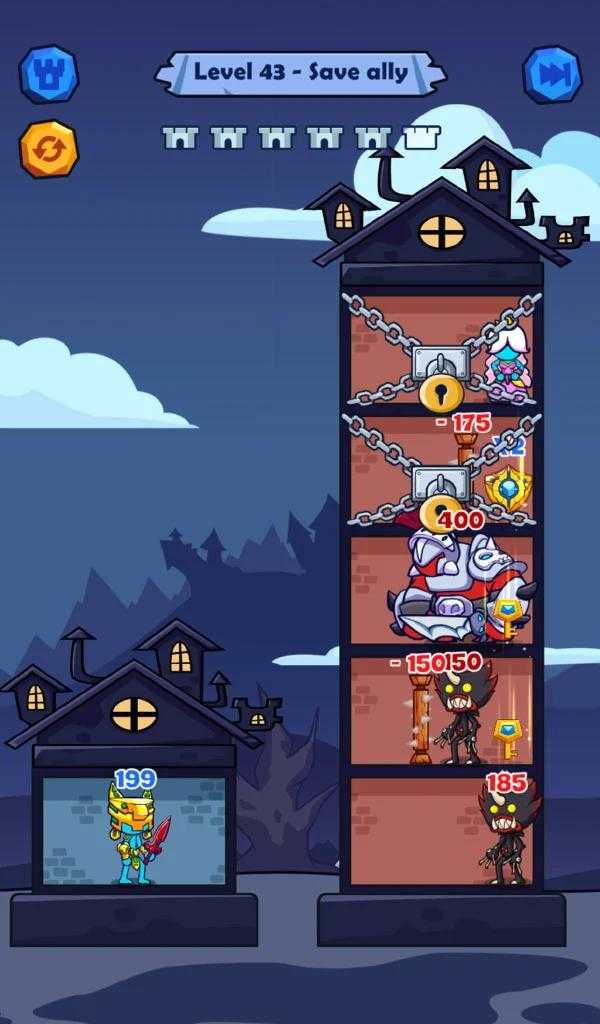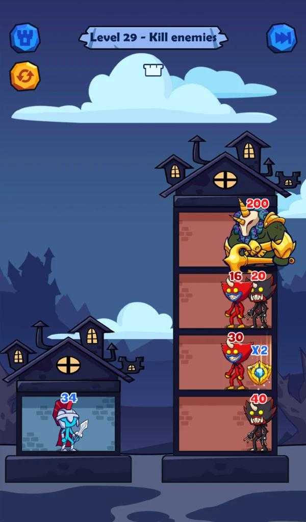 夜幕降临,怪物出现。准备好与可怕的怪物战斗吧,从**兔子到巨型抱抱熊和长妈咪。赚取黄金和充电的方式,成为强大的,并建立您的塔尽可能高。一个公主需要你的帮助,一个宝藏在等着你...合并和消灭英雄之战中的所有怪物,升级到解锁无数可定制的皮肤!! 棍子英雄:恐怖塔战争不仅仅是一个基本的合并和组合游戏。你必须在每一次拖放之前思考,计算每一步行动,在这么多怪物面前用你的大脑策划你的下一步行动...你走得越远,谜题就越难。你认为你能走多远?