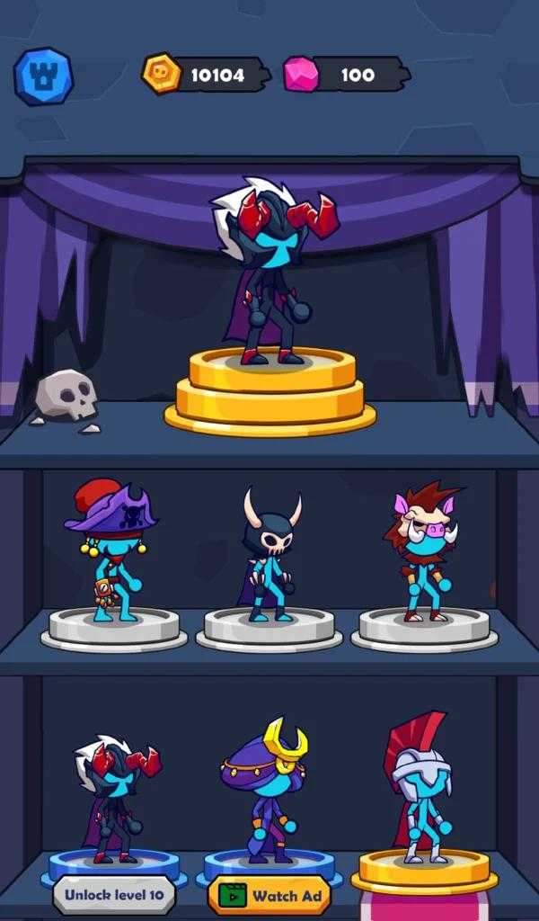4、多种皮肤等你来解锁,炫酷的皮肤让你和其他人与众不同,更加帅气的竞技!《棍棒英雄:恐怖塔战》游戏2023最新版快来八门神器下载吧!