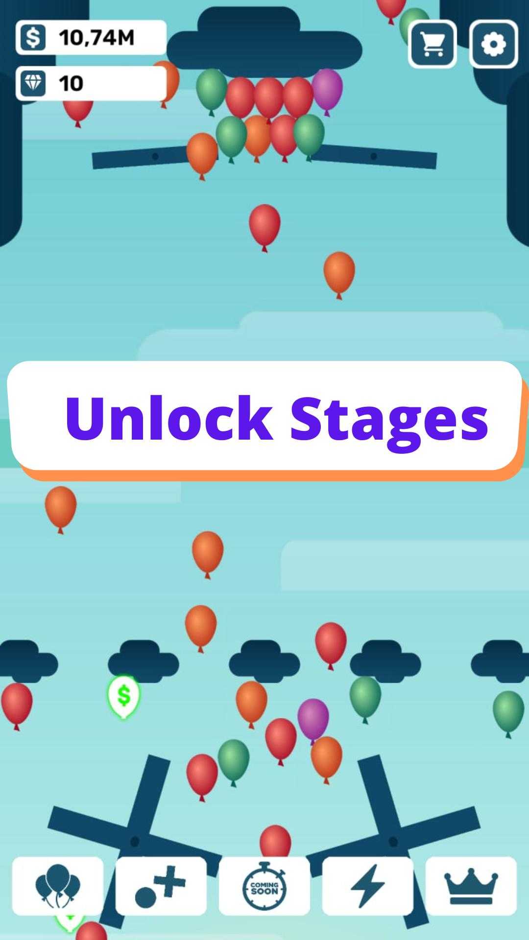 这个气球弹出重力闲置将帮助您放松! 这个冥想游戏是一个平静你的神经,花时间和从你紧张的生活中转移注意力的完美方式。它很容易玩,非常有趣!发送气球飞向天空,避免障碍,慢慢到达顶部。最初的概念使这个游戏非常好玩。你不需要做太多,游戏的大部分只是等待钱存起来,这样你就可以通过各级进展。每一关都有一个乘数,给你比一个接一个地戳破气球更多的钱。