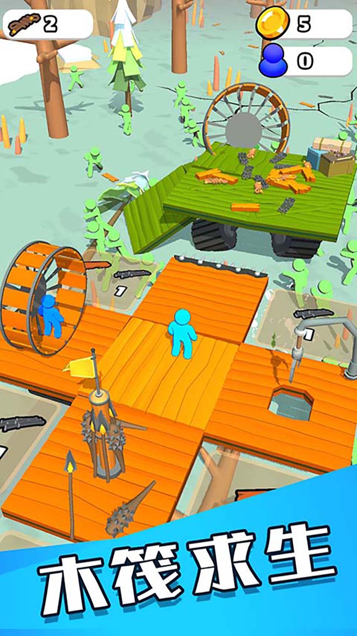 这是一款木筏生存类的游戏,游戏中需要你利用手中收集到的木材进行防御和构建木筏。因为在游戏中也会有很多的危险,也会有僵尸的入侵与攻击,你需要在这样的攻击之下活下来。