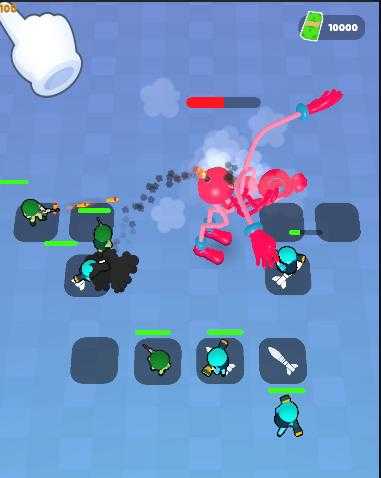 在这个游戏中,通过敲击来袭的士兵,然后敲击地面上的方块,你可以引导他们攻击阵地。在你的位置上,你的士兵会攻击竞技场老板,并获得一些利润供你升级。 拿下老大,让他们都看看谁才是真正的老大,拿奖!