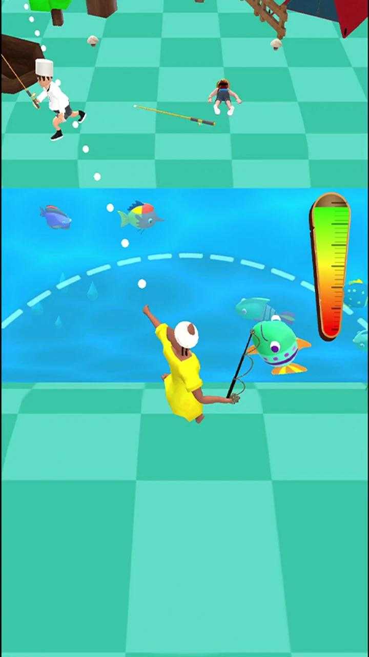 抓钩抛 所有这些都可以在与鱼的战斗游戏中完成,不仅如此,你还会发现许多不寻常的鱼皮和鱼竿 各种地图和多人游戏 游戏规则——在你的对手向你扔鱼之前,先向他扔鱼 除了鱼之外,很多其他的物体会沿着河漂浮,每一个都有它自己的效果——找出什么样的物体在等着你,它有什么属性