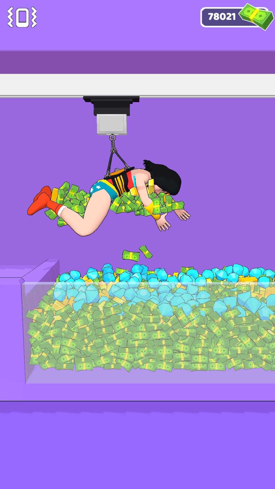 娃娃机,你在这里能带走多少钱都是你的。控制角色的摇摆姿势,选择合适的落点,从满金币池中抢钱。你能抓到多少?