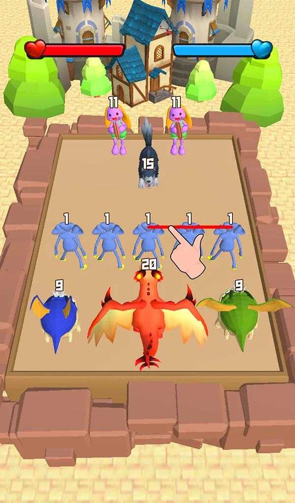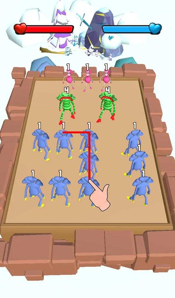 蓝色怪物正在入侵你的区域。是时候保卫你的王国了! 使用战略来组合和升级你的怪物军队。进化它们来对抗敌人。做好准备,为战争做好准备!!! 怎么玩 -匹配相同的单元,并将它们合并成更高的形式 -控制你的军队,明智地合并以杀死对手