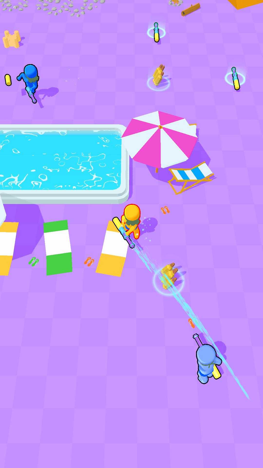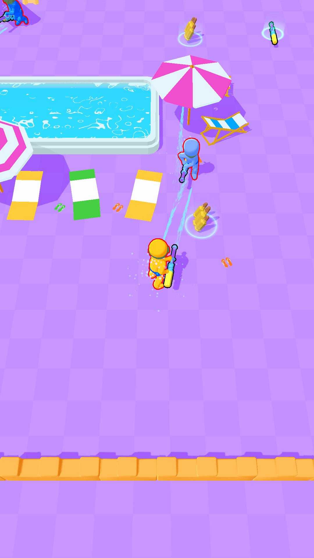 这是一个战斗街机游戏,你扮演一个拥有水枪的角色。用水枪**的对手,做最后一个站着的人。