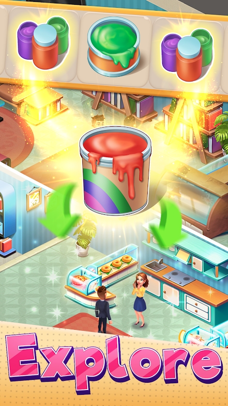 合并 2 个相似的物品来帮助修复这件作品、修理破损的东西并清理商店和建筑物,并选择符合您风格的设计。使用所需物品完成任务并收集硬币和星星以解锁新设计。