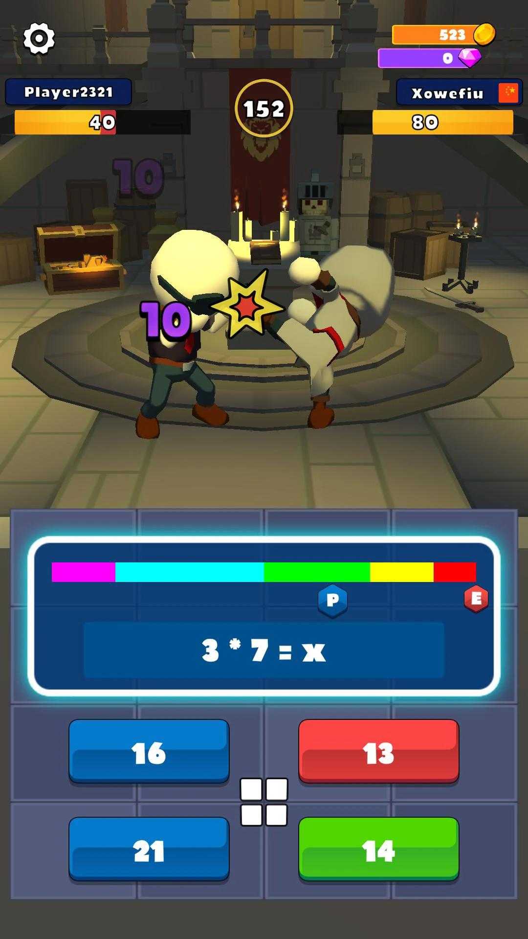 你是在找一款集大脑训练器挑战和格斗于一体的数学训练游戏吗?如何解决一个数字难题,这样你就可以尽可能地打击你的对手?参加心算街头战,只有快速解决数学问题的人才能击中对手并在挑战中幸存。这款大脑训练游戏为孩子们提供了简单的心算和一些复杂的数学挑战水平,是你提高乘法表解决技巧和成为数学大师所需要的。战斗战斗游戏旨在帮助你变得更聪明,因为你解决更多的数学琐事水平,并继续接受新的数学挑战。根据您从所有胜利中收集的硬币和宝石,解决数字难题并解锁新的战斗**和战士头像。你解出数学测验的速度越快,你出拳、踢腿或击打对手的力度就越大。